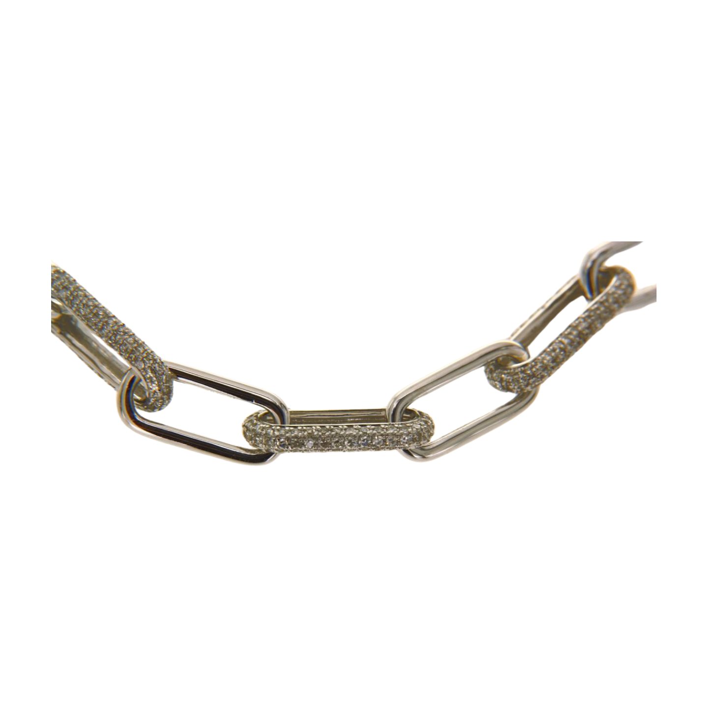 Ожерелье-цепочка из стерлингового серебра 925 пробы с кубинской инкрустацией белыми фианитами.Его можно настроить разной длины.
